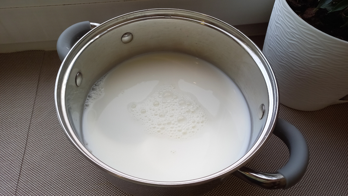 1. В небольшой кастрюле довести молоко до легкого кипения.