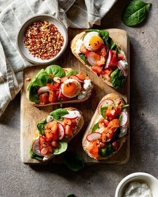 Эти брускеты станут отличным вариантом для сытного перекуса, который порадует не только вкусом, но и яркой подачей!