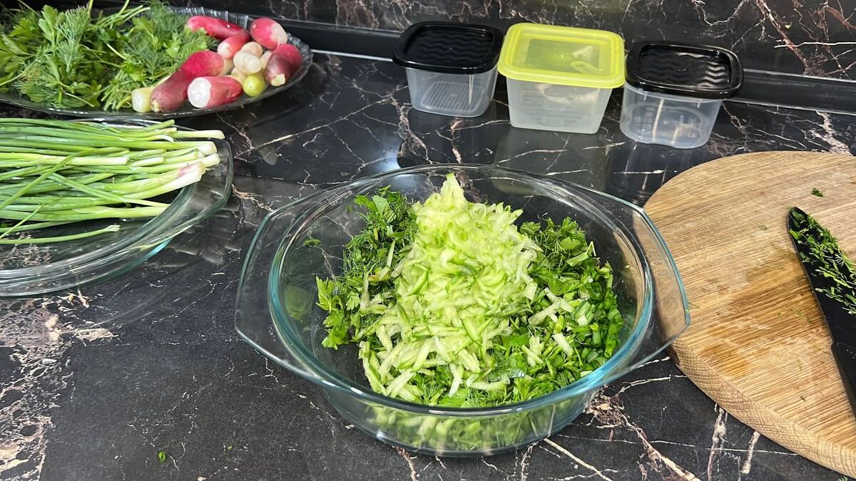 Для начала нужно позаботиться о наборе необходимых ингредиентов. Все овощи тщательно моются и обсушиваются. Укроп и петрушка нарезаются мелко, а огурцы и редис натираются на крупной тёрке. После этого все составляющие тщательно перемешиваются и раскладываются по контейнерам. Храните их в морозильной камере. Когда возникнет желание насладиться окрошкой, просто достаньте контейнер, добавьте квас и, по желанию, разнообразьте блюдо другими компонентами.
