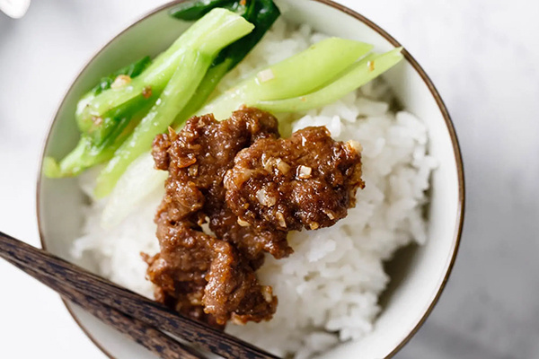 Жарьте говядину небольшими порциями на разогретой сковороде, чтобы она имела контакт с горячей поверхностью. После того как говядина будет готова, добавьте в сковороду Ша Ча и чеснок, обжаривайте до появления яркого аромата, а затем быстро смешивайте с мясом и подавайте к столу.