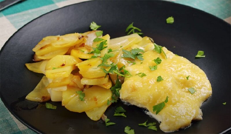 Пока рыба запекается, можно подготовить гарнир. Отлично подойдут жареный картофель, отварной или запечённый картофель, гарнир из риса или воздушное картофельное пюре. Подавайте горячим, посыпав свежей зеленью.