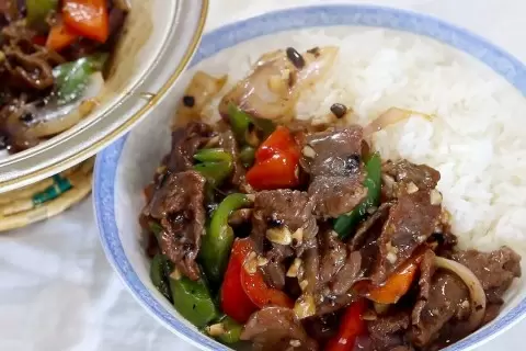 Вмешайте подготовленный соус и доведите до кипения, добавляя разведенный крахмал для густоты. Верните говядину обратно в сковороду, тщательно перемешайте и снимите с огня. Блюдо готово к подаче!