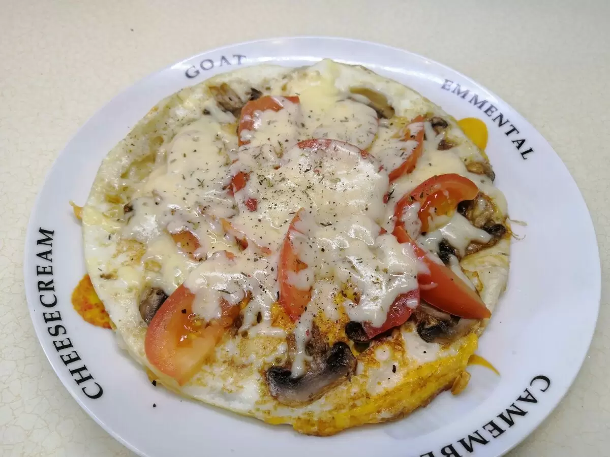 3. Далее следует накрыть сковороду крышкой, чтобы яйца приготовились. После этого аккуратно перевернуть содержимое, выложить сверху нарезанные помидоры, немного посолить и добавить итальянские травы для аромата. Завершить процесс добавлением сыра и снова накрыть крышкой, готовить на маленьком огне до тех пор, пока сыр не расплавится.