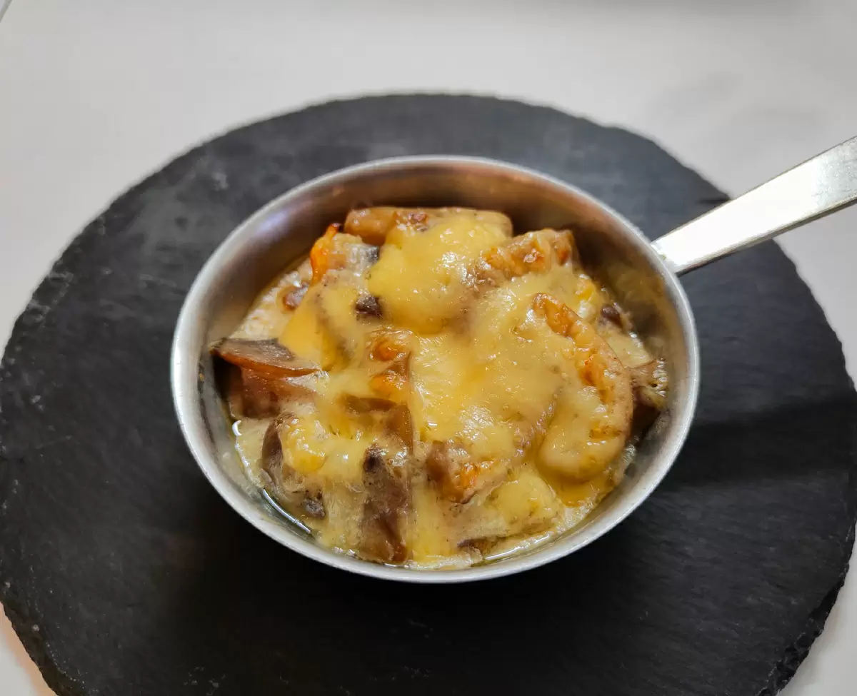Соберите все ингредиенты: грибы с луком и соус, тщательно перемешайте, и распределите по формочкам. Посыпьте тёртым сыром — выбирайте тот, который хорошо плавится. Запекайте в разогретой до 200 градусов духовке около 10 минут. Сыр должен расплавиться и немного зарумяниться, но будьте осторожны, чтобы не перегреть.