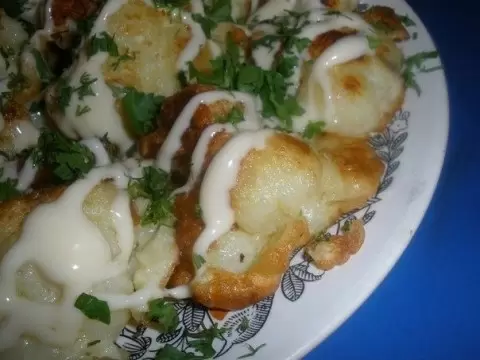 4. Когда все кусочки будут готовы, выложите их на сервировочное блюдо. Придайте изюминку оформлением: с помощью майонеза можно украсить края, а для завершения посыпьте зеленью.