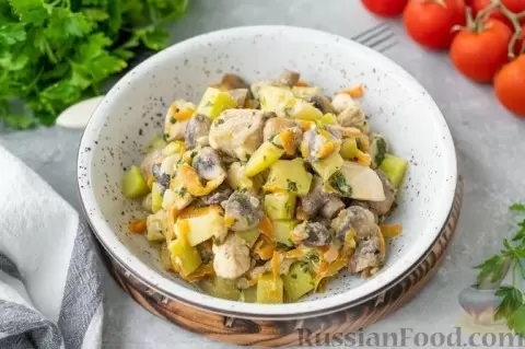 Курица с кабачками, грибами и сметаной — это идеальный вариант для ужина. Сочное куриное филе, нежные кабачки и ароматные грибы, запеченные под сметанным соусом, создают гармоничное сочетание, которое приятно удивит ваши вкусовые рецепторы.