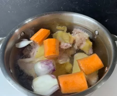 Для начала займитесь бульоном: положите курицу в холодную воду, нарезанные крупно морковь и лук, а также лавровый лист и перец горошком. Главное – не солить бульон в самом начале, лучше оставить это на конец варки.