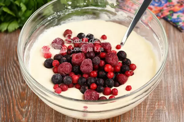 Важно помнить, что тесто не должно быть слишком густым – это может испортить текстуру оладий, делая их «резиновыми». Затем добавить замороженные ягоды, аккуратно перемешивая, чтобы избежать изменения цвета теста.