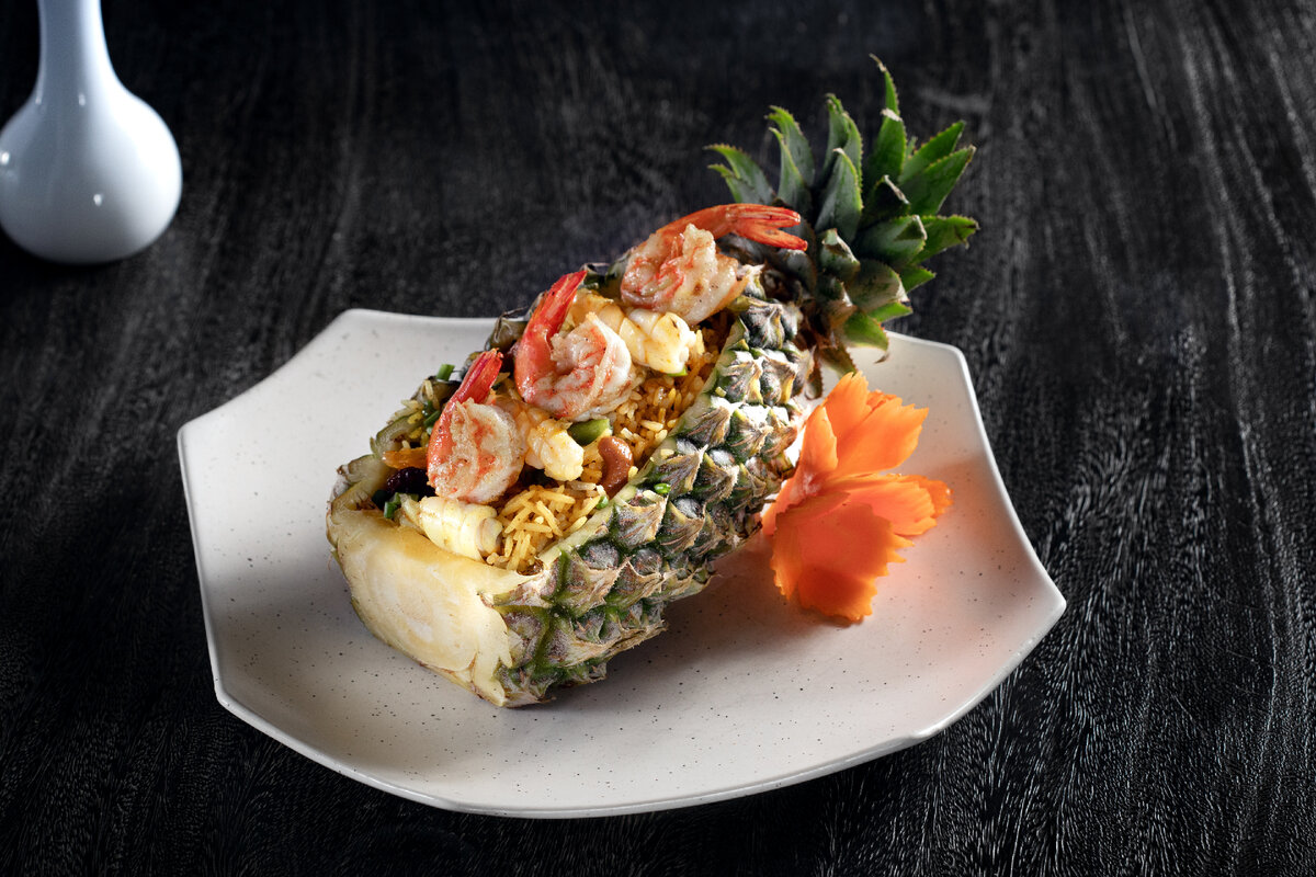 И главная изюминка — свежий ананас. Это не только прекрасное оформленное блюдо, но и источник витаминов, минералов и других полезных веществ. Ананас способствует расщеплению жиров, что делает его отличным дополнением для тех, кто следит за своим питанием. Обжаренные вместе с креветками, они становятся мягче и слаще, что создает уникальный вкус.