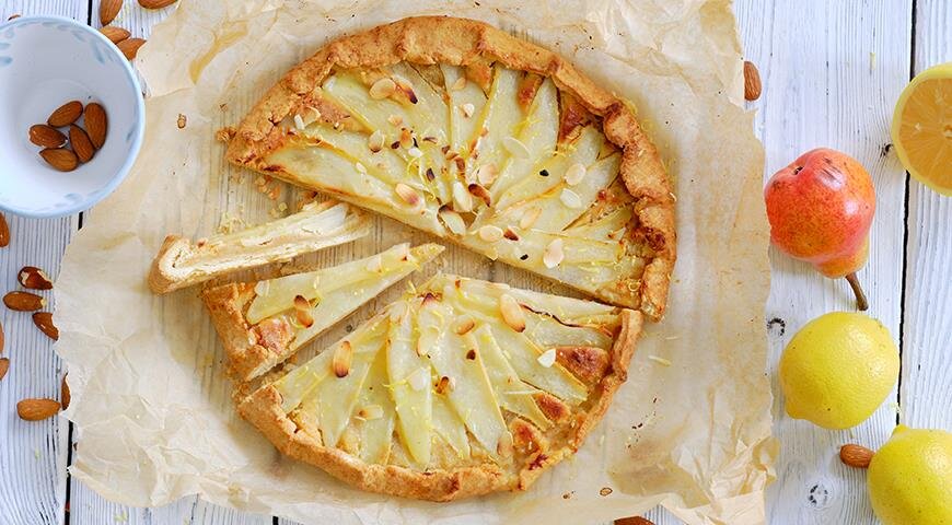 Идеальный десерт для теплых вечеров — это не что иное, как галета с сочными грушами и нежным марципаном. Подавайте ее теплой, чтобы насладиться полным спектром вкусов.