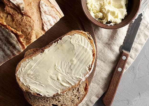 - Достаньте из холодильника. Настоящее масло должно быть твердым и разбиваться при нажатии ножом. Спред же обычно легко мажется.