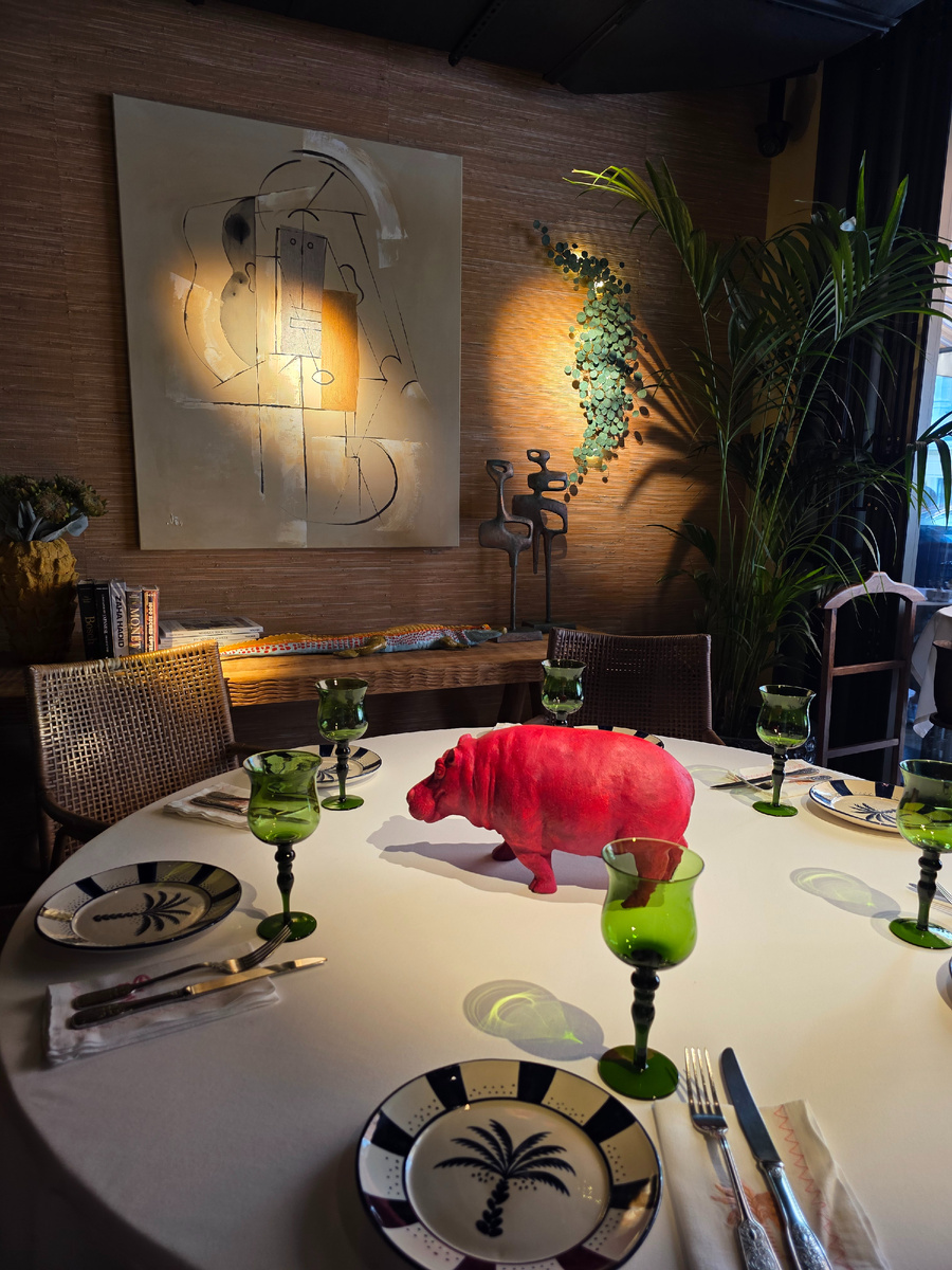 Яркие картины, живые растения, стилизованные витрины с мясом и эксклюзивная посуда создают уникальную атмосферу. Тёплый свет делает пространство более уютным и гармоничным, что несомненно погружает в атмосферу заведения.