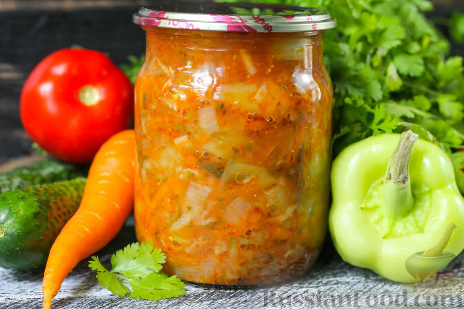 Для полноценного зимнего меню можно заготовить салат из огурцов, помидоров, сладкого перца, моркови и лука. Это блюдо может подаваться как самостоятельная закуска или в качестве гарнира к основному блюду, что делает его универсальным.