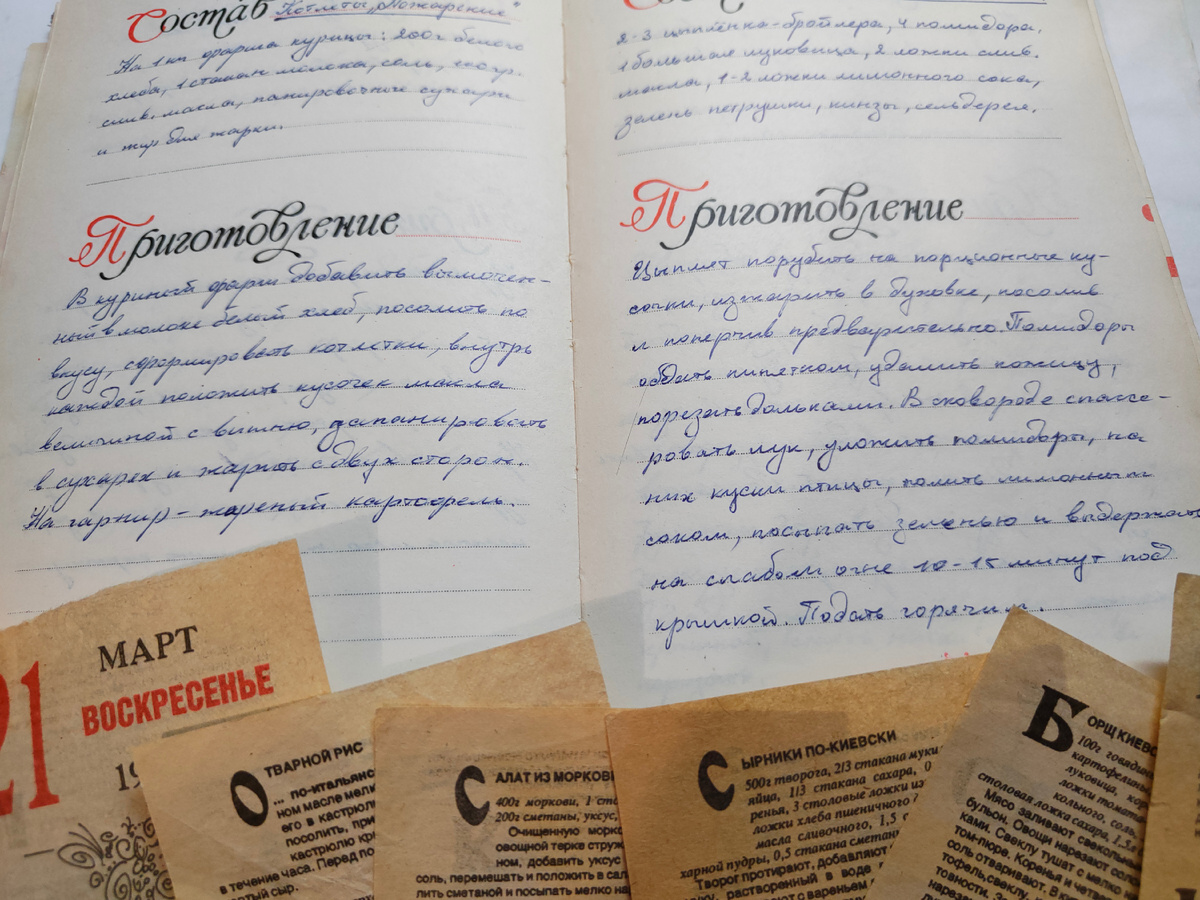 В те времена домохозяйки собирали рецепты из журналов, книг и советов подруг. Листая желтые страницы и конспекты, они переписывали секреты кулинарного мастерства. С появлением интернета хранение рецептов приняло совершенно новый формат, однако ностальгия по старым записям порой вызывает желание вернуться к этим традициям.