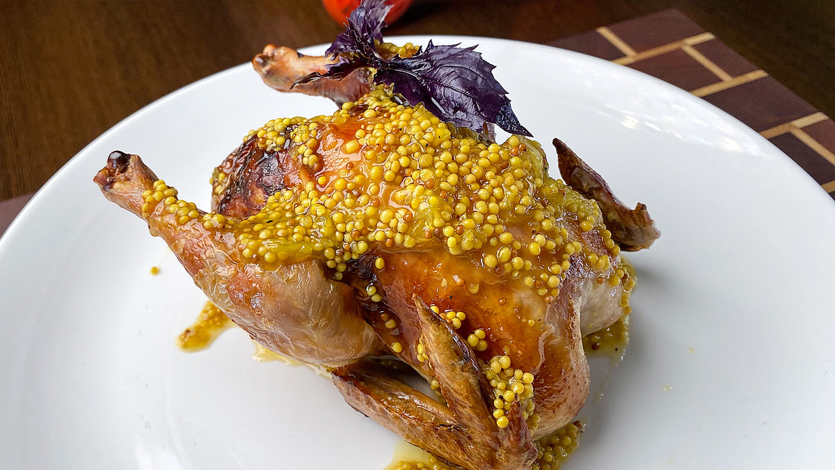 Готового цыплёнка полейте получившимся соусом и украсьте свежими веточками базилика. Это блюдо сливает в себе сладковатый и пикантный вкусы, которые не оставят равнодушными ваших близких!