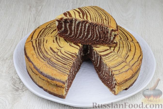 - Пирог "Зебра" на газировке – просто создан для любителей эффектной выпечки. Этот полосатый пирог отличается воздушной текстурой и приятным вкусом, благодаря добавлению газированной минеральной воды, которая добавляет легкости тесту.