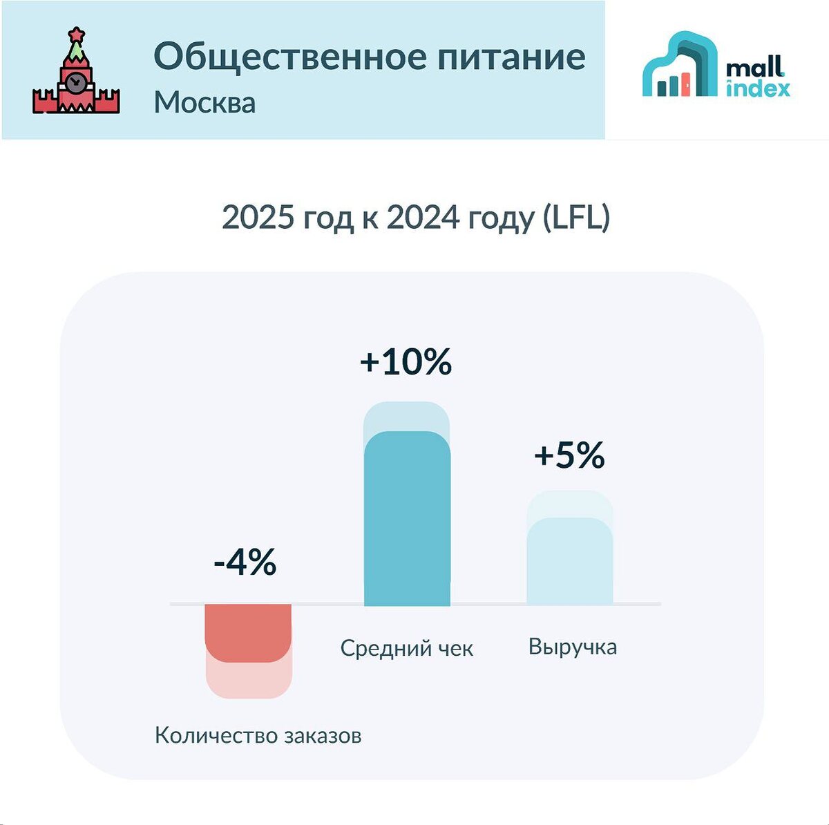 По данным за 2025 год, рынок общественного питания в Москве демонстрирует интересные и противоречивые тренды. Сравнение с предыдущим годом показывает, что хотя количество заказов сократилось на 4%, средний чек увеличился на 10%, а общая выручка поднялась на 5%.