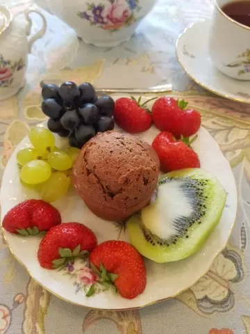 Пока кексы подрумяниваются, хорошенько нарежьте киви, помойте виноград и клубнику. Как только кексы будут готовы, подавайте их на стол в сопровождении ароматного чая и свежих фруктов. Наслаждение весенними утрами становится более ярким!