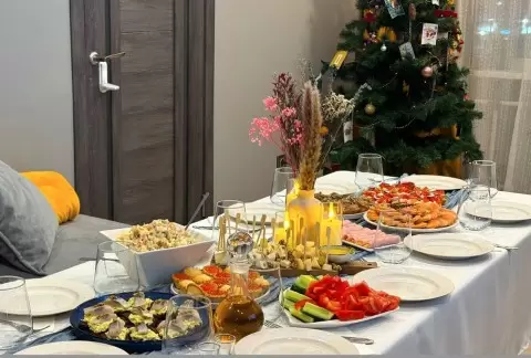 Когда пришли к ним в гости, нас уже ждал накрытый стол, мерцающие свечи и невероятные ароматы — чувство домашнего уюта витало в воздухе. Гостей было немного, но каждый миг был наполнен смехом и радостью.