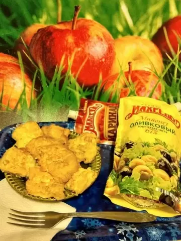 Для создания кляра необходимо в глубокой миске взбить яйцо с майонезом. В этот состав добавляется готовый маринад, который сделает тесто ещё более насыщенным и вкусным.