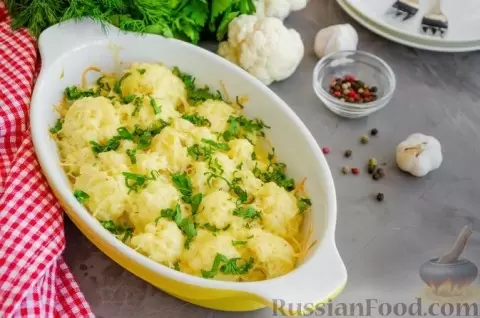 - Цветная капуста в сметанно-чесночном соусе. Это легкое и сытное блюдо порадует вас своими сливочными нотками и ароматом чеснока, который раскрывается при запекании под слоем сыра.