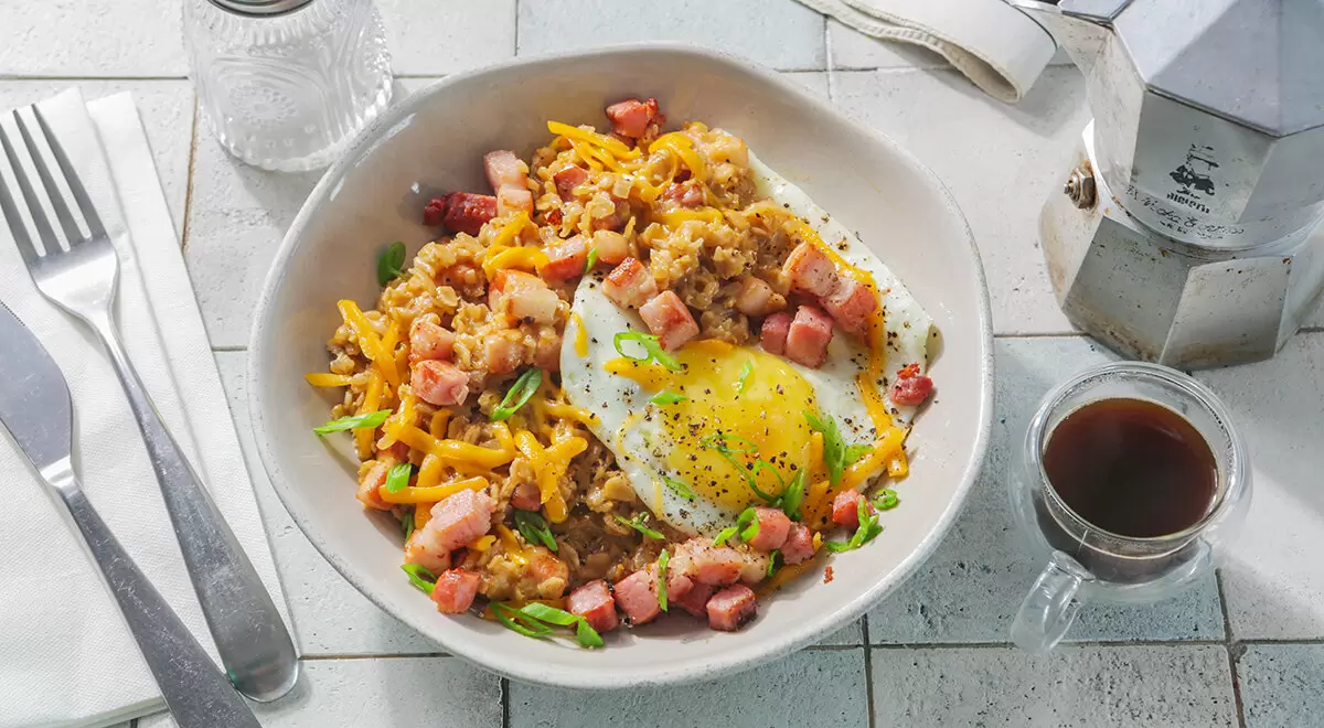 Вы хотите попробовать что-то новое и необычное? Овсянка с чеддером, обладающая насыщенным вкусом, хрустящий бекон и идеально приготовленное яйцо сделают ваш завтрак незабываемым!