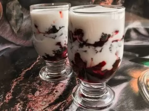 Для сборки десерта понадобится несколько слоев. Начните с кусочков бисквита, выкладывая их на дно стакана. Следующий слой – это ароматный вишневый конфитюр, а за ним – нежный крем из натурального йогурта и меда. Для этого просто смешайте йогурт с медом, чтобы получить легкий и сладкий крем.