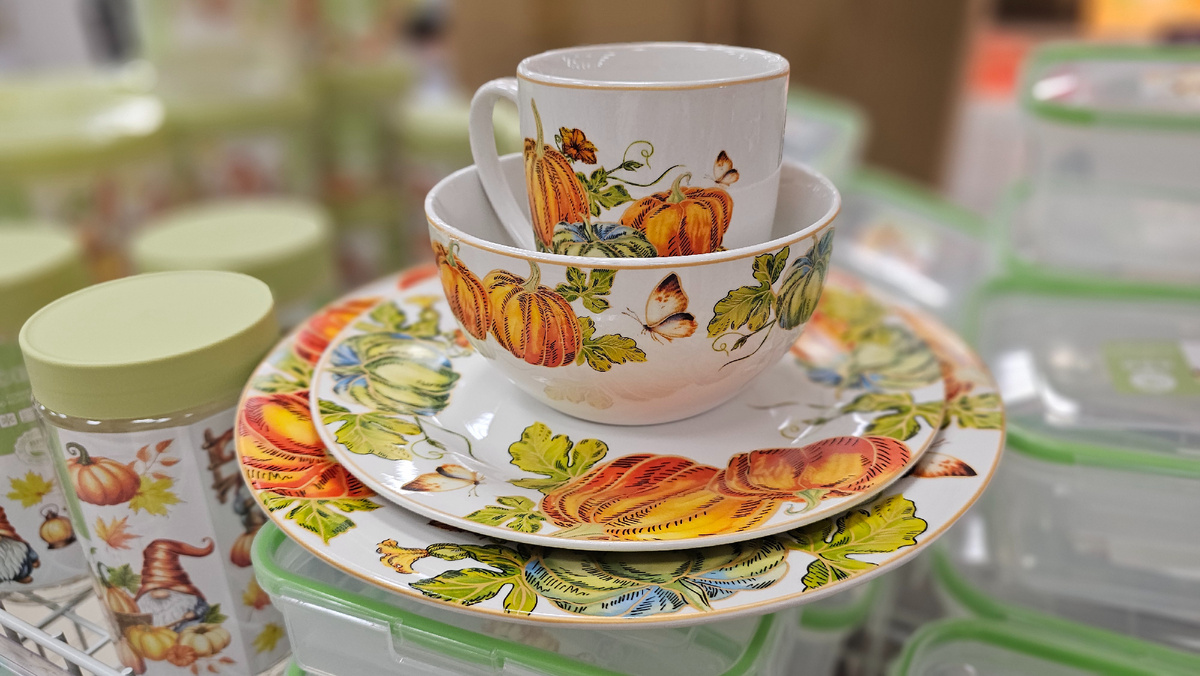 В новой коллекции можно найти все, что нужно для сервировки – от кружек до пиал и тарелок. Яркие осенние расцветки, выполненные из качественной керамики, создают атмосферу тепла и радости, а матовая золотистая окантовка придаёт изделиям нотку изысканности. Цены на новинки начинаются всего от 199 рублей, что делает эту коллекцию доступной для широкого круга покупателей.